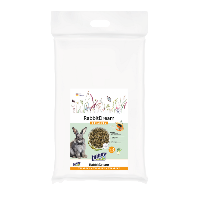 L’aliment complet Granulés Lapin Vitalité associe 63 plantes et herbes issues de prairies non traitées à des ingrédients naturels comme la papaye, le fenouil et la camomille. Ce mélange harmonieux soutient la digestion, renforce la flore intestinale et contribue à la beauté du pelage. Sa formule riche en fibres favorise l’usure naturelle des dents et le maintien d’un poids optimal.