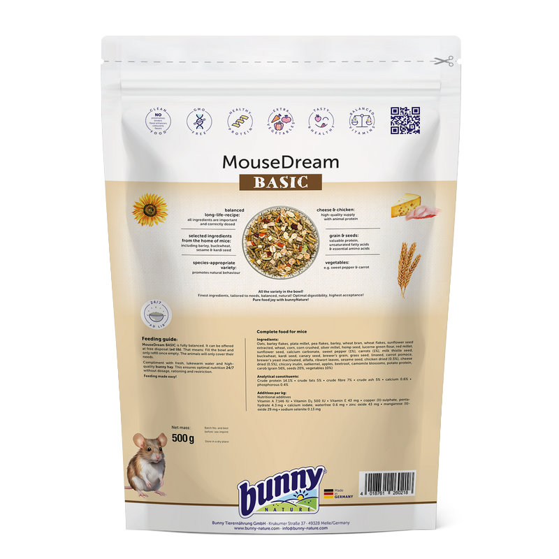 L’aliment complet Souris offre une nutrition équilibrée et naturelle, adaptée aux besoins des souris domestiques. Enrichi en protéines animales issues du poulet et du fromage, en céréales et graines variées, ainsi qu’en légumes riches en nutriments, il soutient la vitalité, la digestion et le comportement alimentaire naturel des souris.