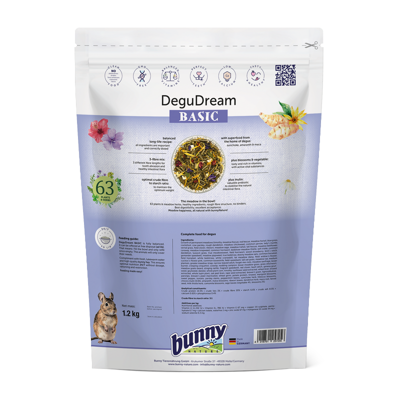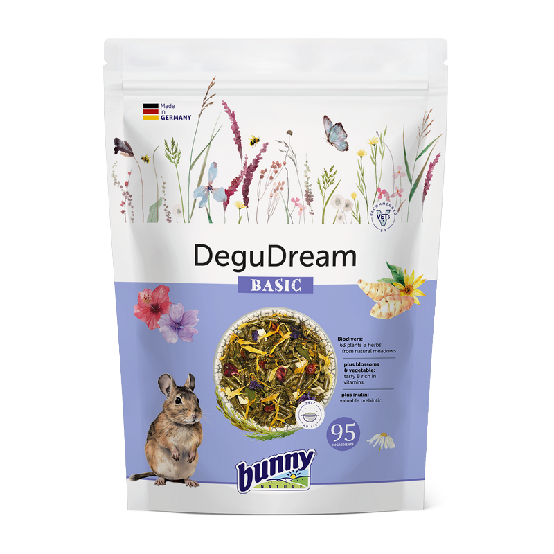 L’aliment complet Octodon Adulte combine 63 plantes et herbes issues de prairies non traitées avec des fleurs et légumes riches en vitamines. Enrichi en inuline et en superaliments tels que le topinambour, l’amarante et la maca, il soutient la flore intestinale, favorise une bonne digestion et contribue à la vitalité quotidienne des octodons.