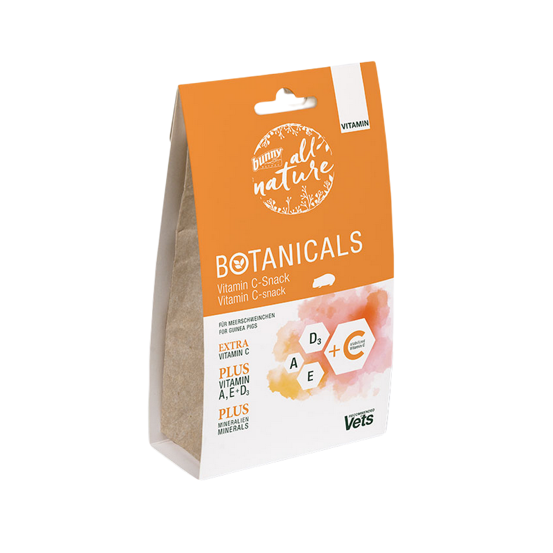 Botanicals VITAMIN – Snack à la vitamine C apporte aux cochons d’Inde un complément essentiel pour couvrir leurs besoins quotidiens en vitamines et oligo-éléments. Formulé à base d’ingrédients naturels, ce snack soutient l’immunité et prévient les carences en vitamine C.